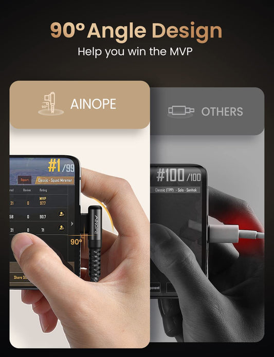 2-Pack Type C Charging Cable 3.1A Fast Charge, Right Angle [6.6Ft+6.6Ft] USB C Cable, Durable Nylon Braided Type C Charging Cable Fast Charge Compatible Galaxy S10 S9 S21, LG V30,V20,G6